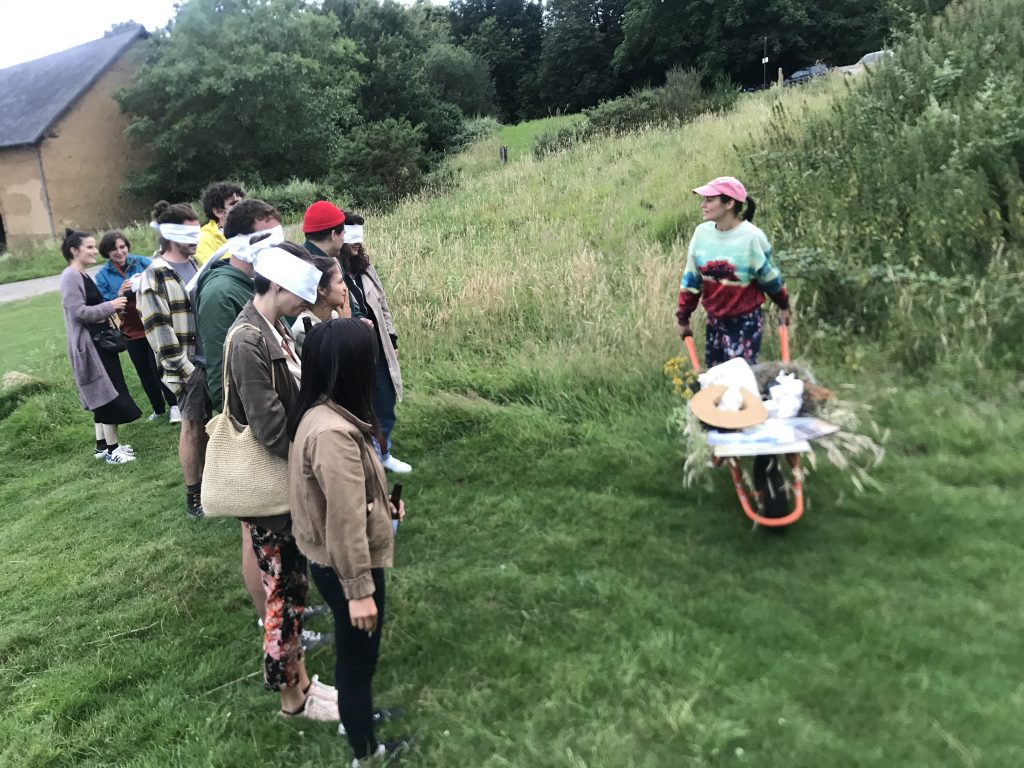 En 2025, le laboratoire culturel Expériences fête ses 5 ans à Tizé ! Après un bilan relationnel et un archivage des créations, la troisième proposition de l’année s’articule autour de la notion d’attachement aux patrimoines dans le prolongement des journées du patrimoine et du matrimoine. Trois expériences pour raconter autrement le domaine et l’association sont proposées puis une causerie est initiée sous l’arbre à palabre du nouveau « port d’attaches » de Tizé. Cette causerie a pour objectif de présenter l’approche singulière du laboratoire : la mise en valeur du patrimoine à travers le sensible et le poétique, à la croisée de la médiation culturelle et de la création artistique. Cet échange est organisé par Adrien Lecoursonnais, artiste-fondateur du labo, Leïla Morvan, médiatrice du matrimoine et première stagiaire, Olinka Gauthier, médiatrice, et seront associées Fabienne Quéméneur, dans le cadre de ses recherches sur « l’art bâtisseur » Au sein d’Au bout du plongeoir et de l’ANPU, et Coraline Beuvier, chargée de médiation au Musée des Beaux-arts de Rennes.